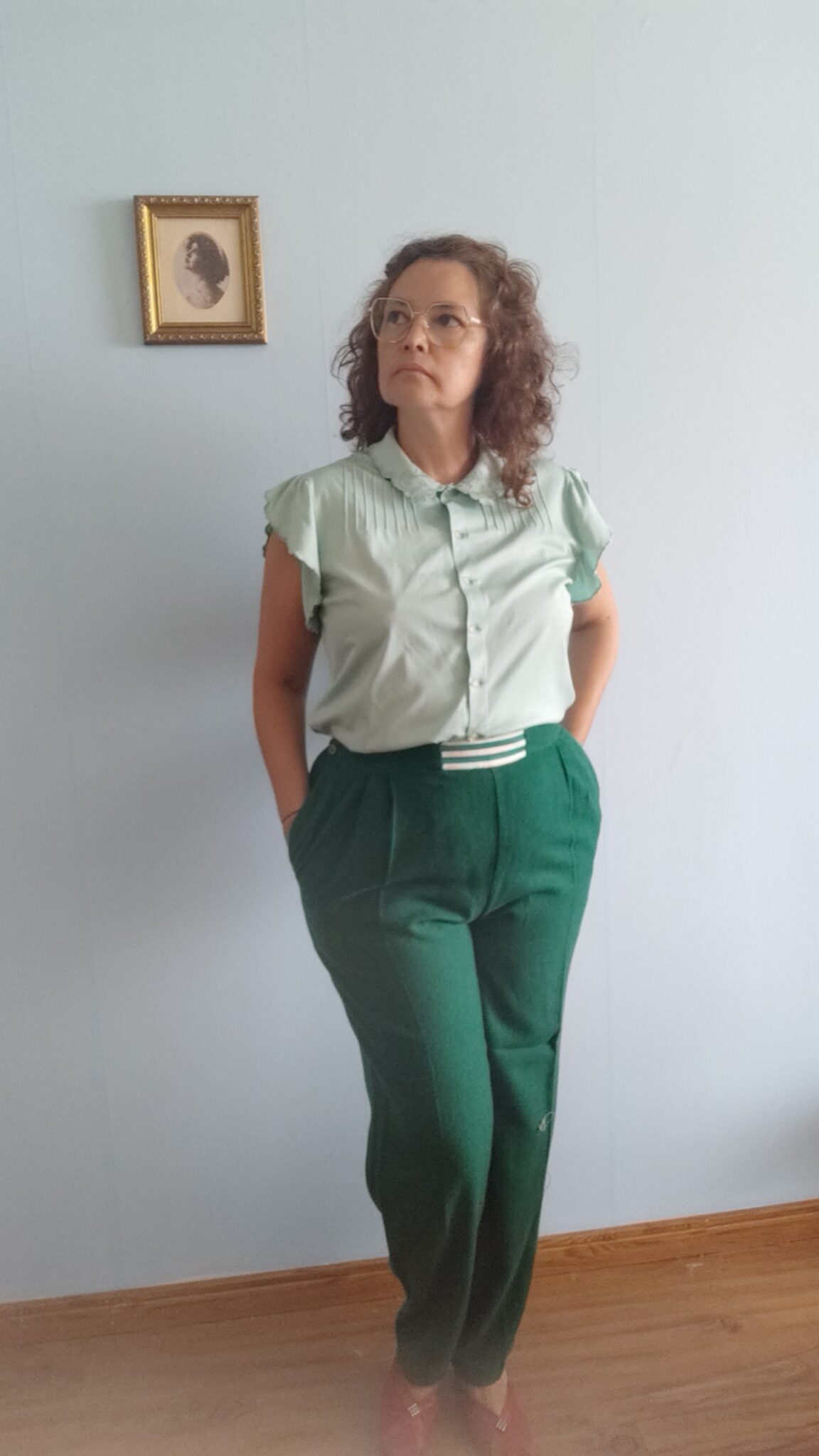 A modelagem traz delicadeza nos detalhes e leve estrutura na silhueta, equilibrando romantismo e presença. O tom verde água reforça a estética setentista e permanece atual em composições contemporâneas.