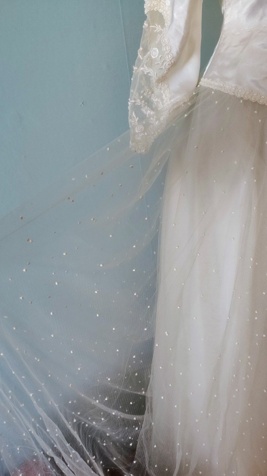 Vestido de Noiva Vintage Anos 80 em Cetim com Tule Poá — PP / 36